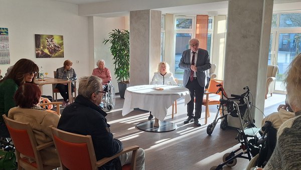 Frau Chil-Gevorgyan (Einrichtungsleitung) begrüßte alle anwesenden Bewohner*innen, deren Angehörigen und Mitarbeiter.