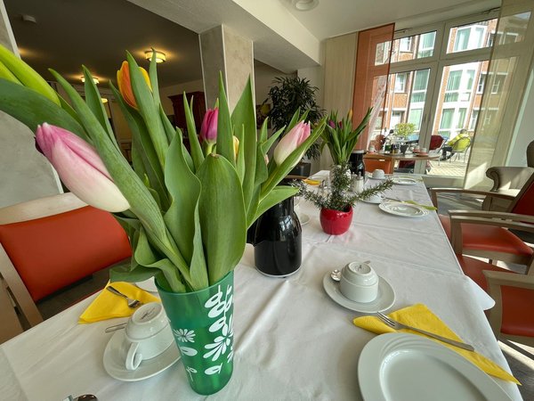 Es duftete im ganzen Haus. Die Bewohnerinnen äußerten Zufriedenheit anhand des frühlinghaft gedeckten Tisches.