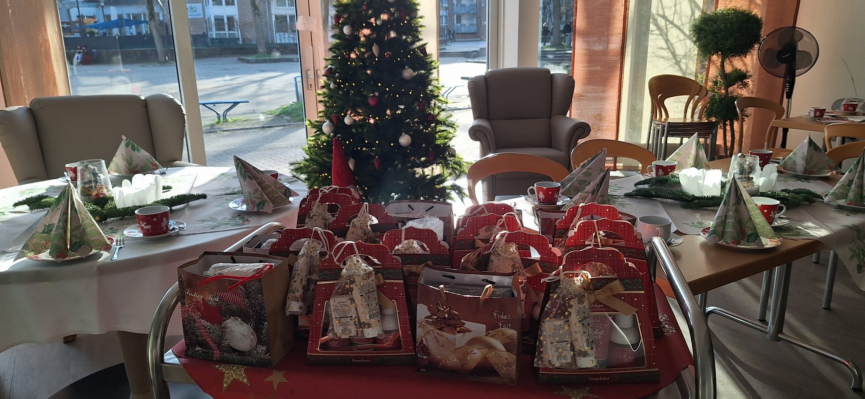 Die Bewohner*innen haben sich über die Weihnachtsgeschenke, leckeren Torten, selbstgemachten Weihnachtsplätzchen und Glühwein sehr gefreut!